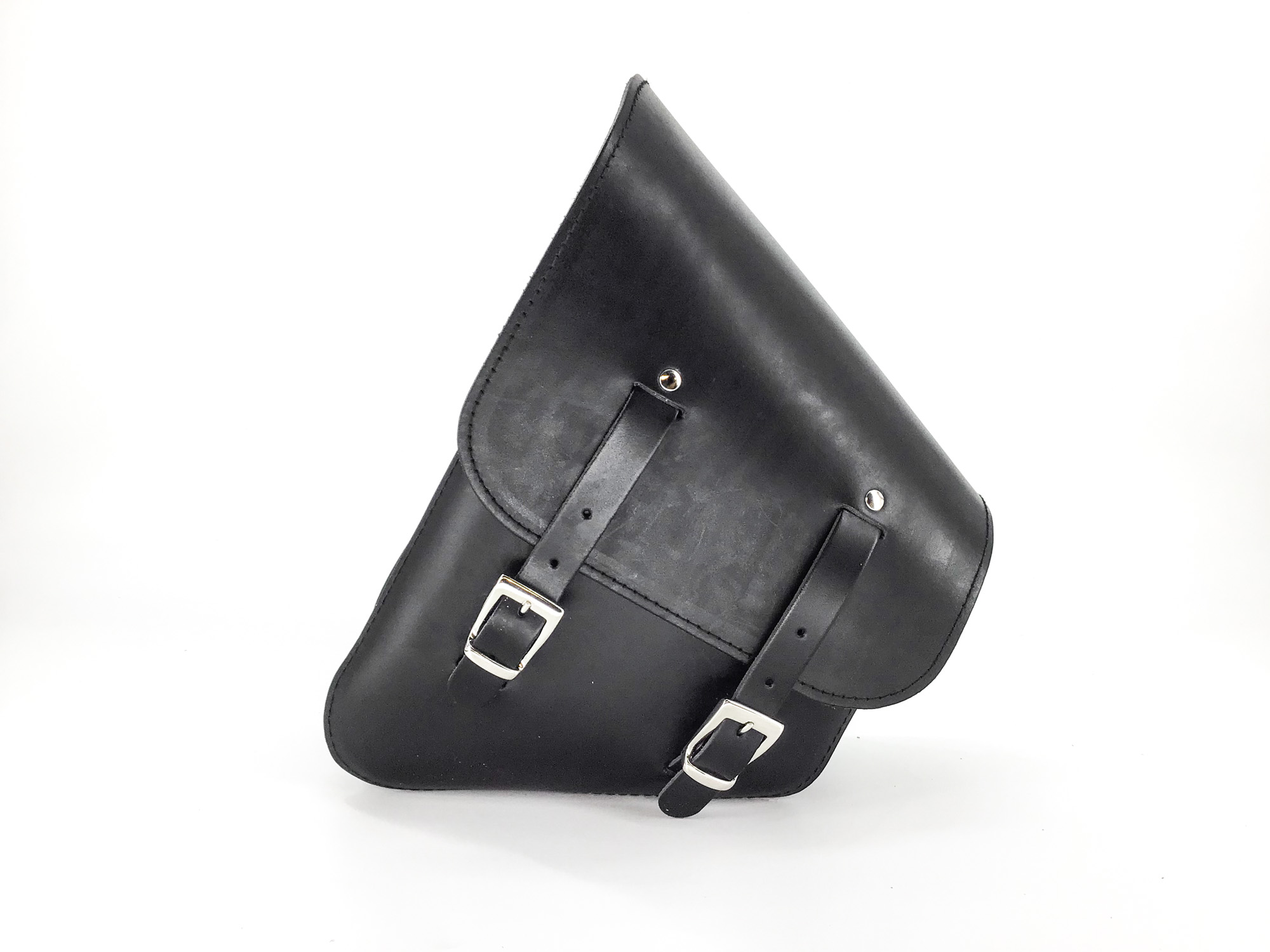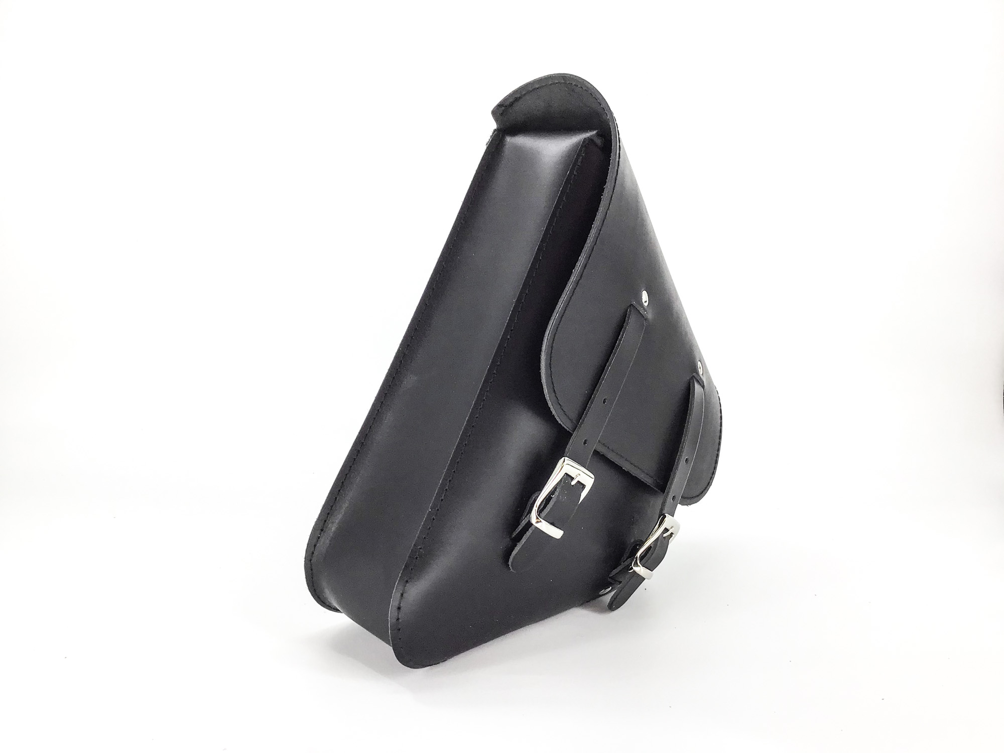 De tas is handgemaakt van zwart kwaliteitsleer.
