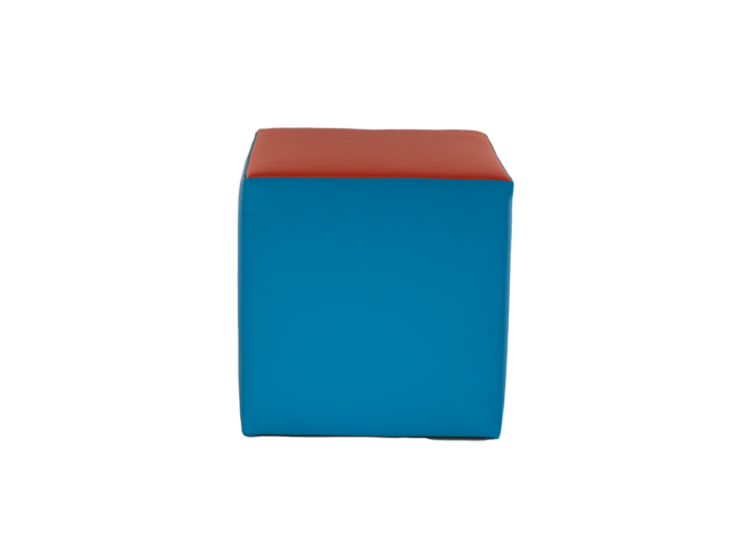 Deze poef is speciaal gemaakt voor kinderen. Uitgevoerd in twee vrolijke kleuren (kunstleer), blauw met rode top.