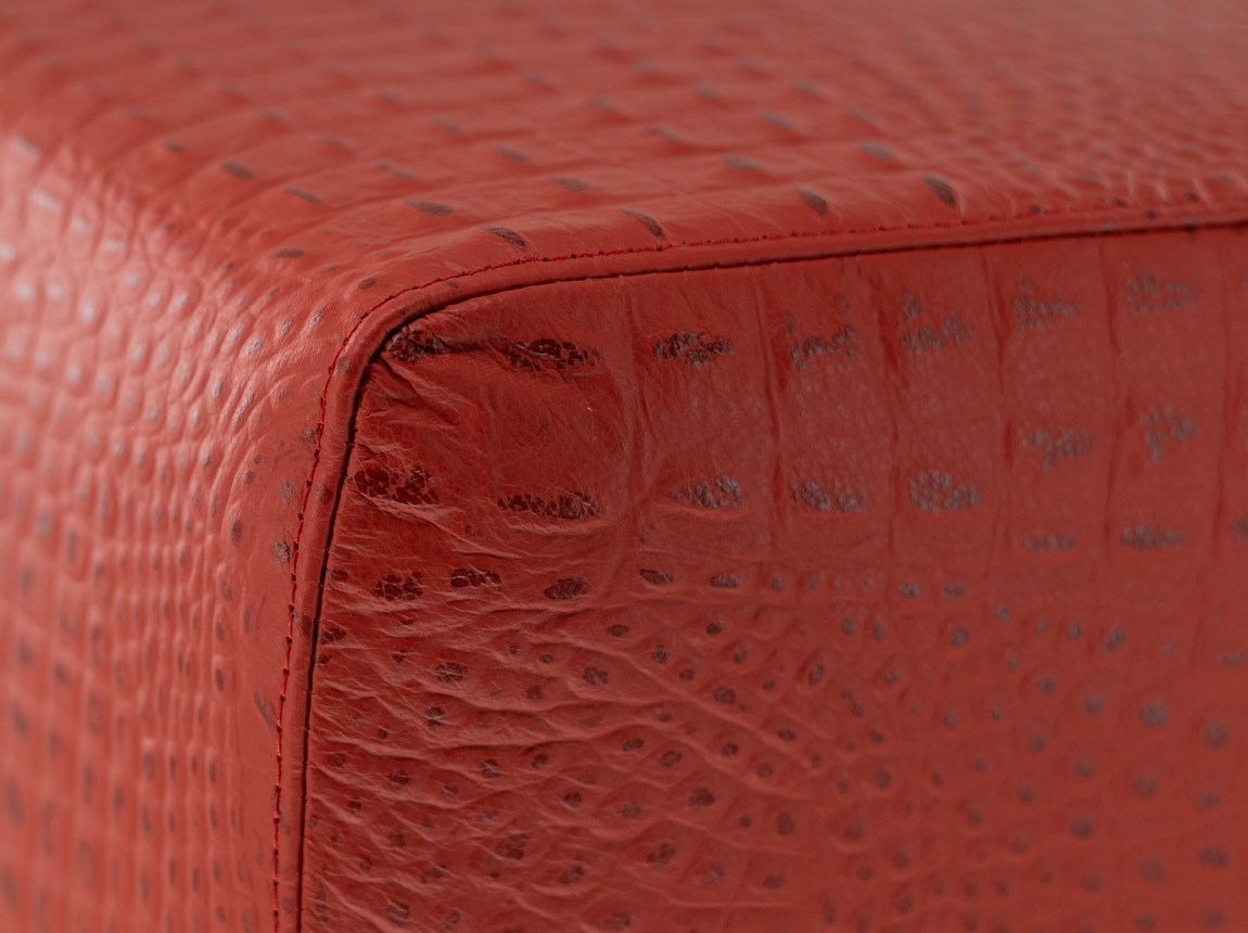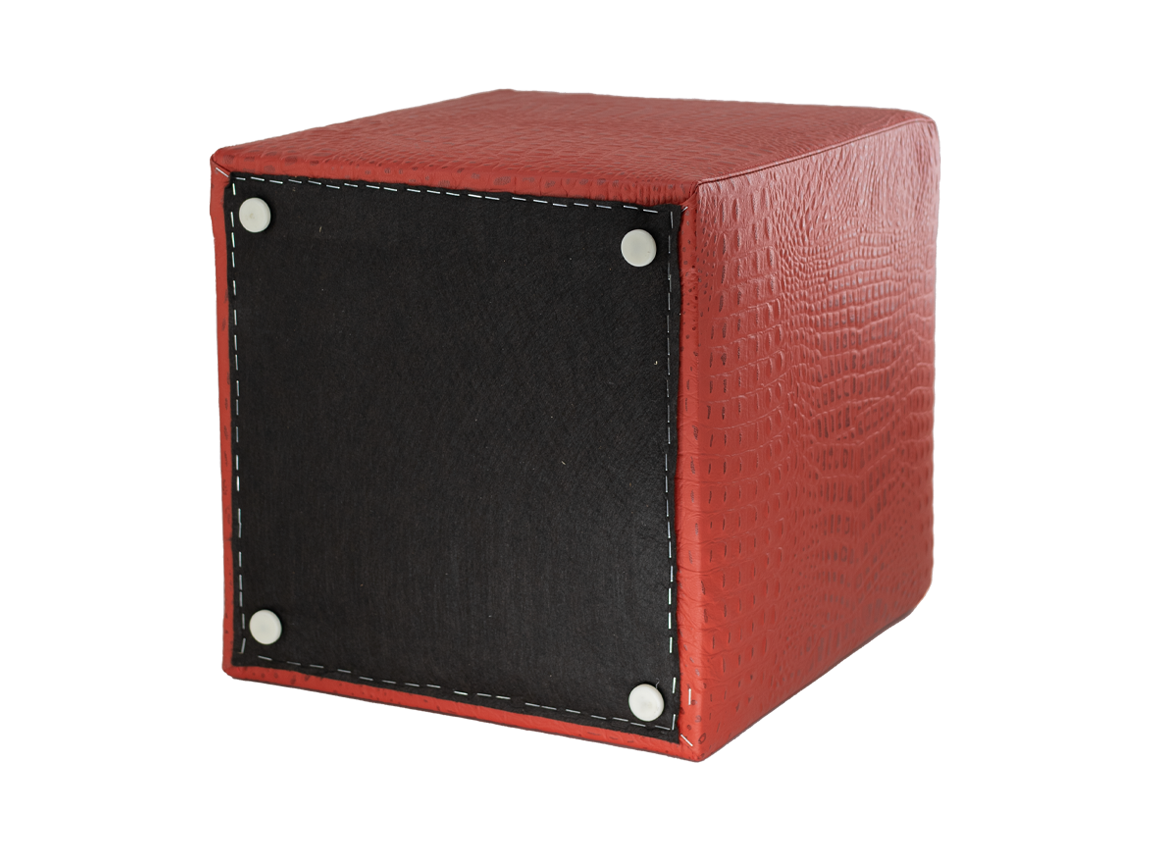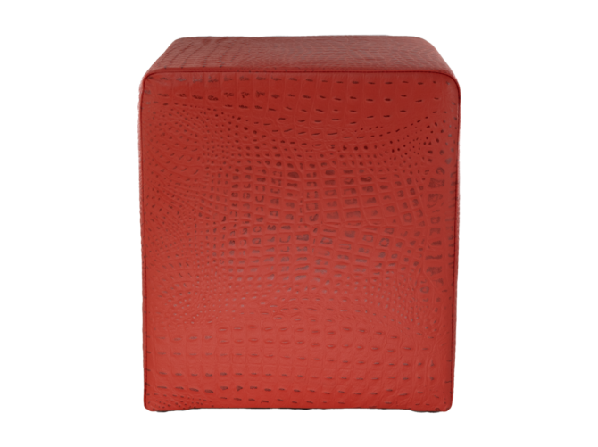 Een lederen poef met Krokoprint in Ferrarirood leder.